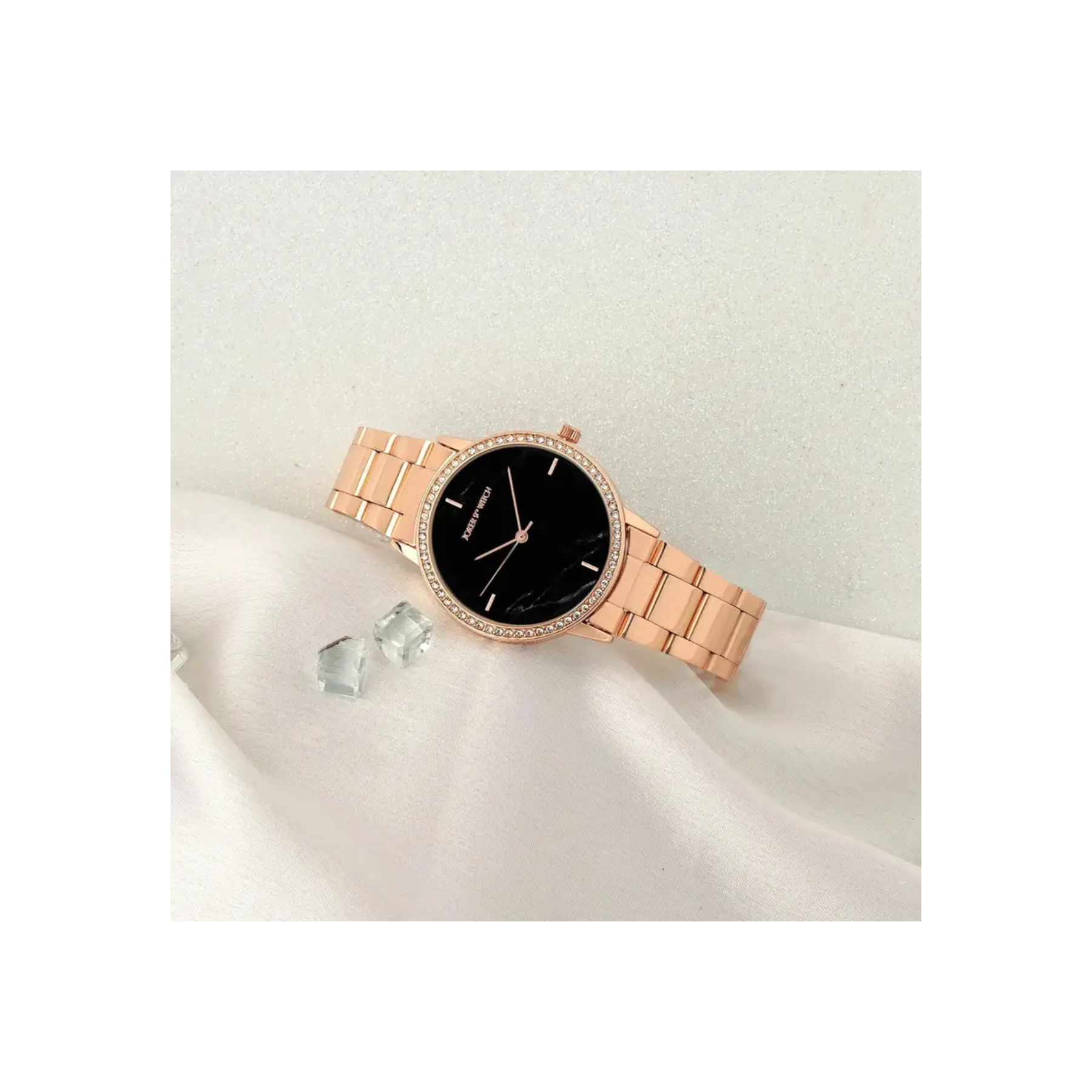 Joker & Witch Comet Black Dial Rose Gold Stainless Steel Watch for Women